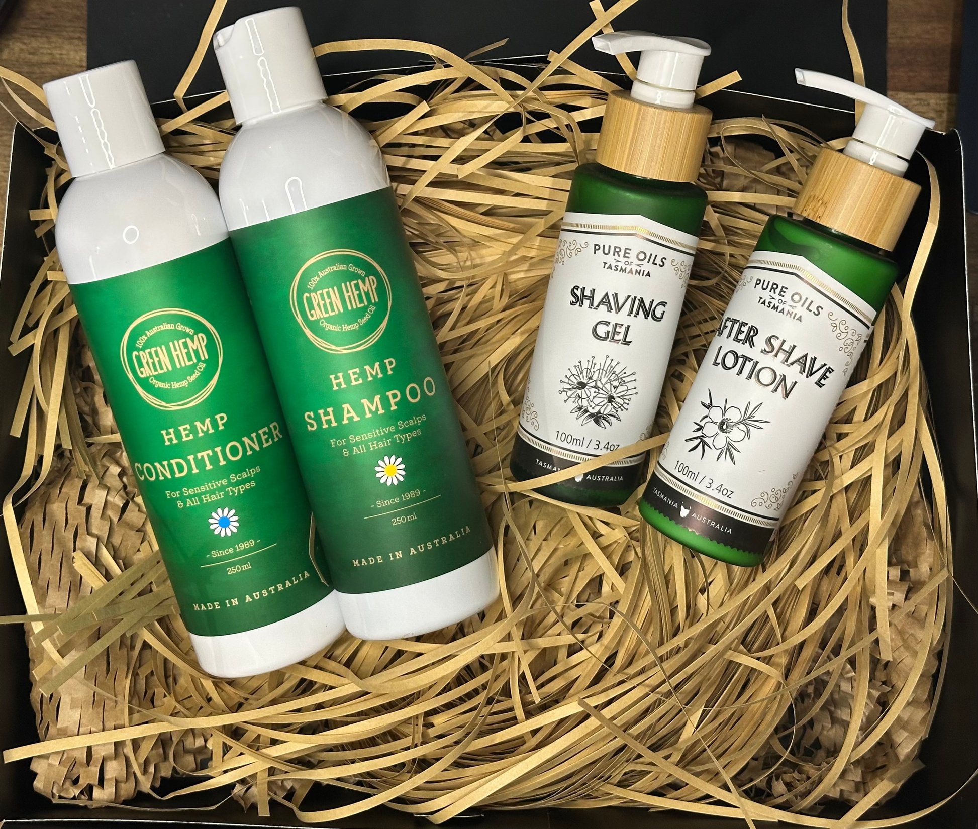 Look after your Dad this Fathers day with a hair and shave gift pack. Featuring Green Hemp Shampoo and Conditioner and Pure Oils of Tasmania Shave Gel and After Shave Lotion.