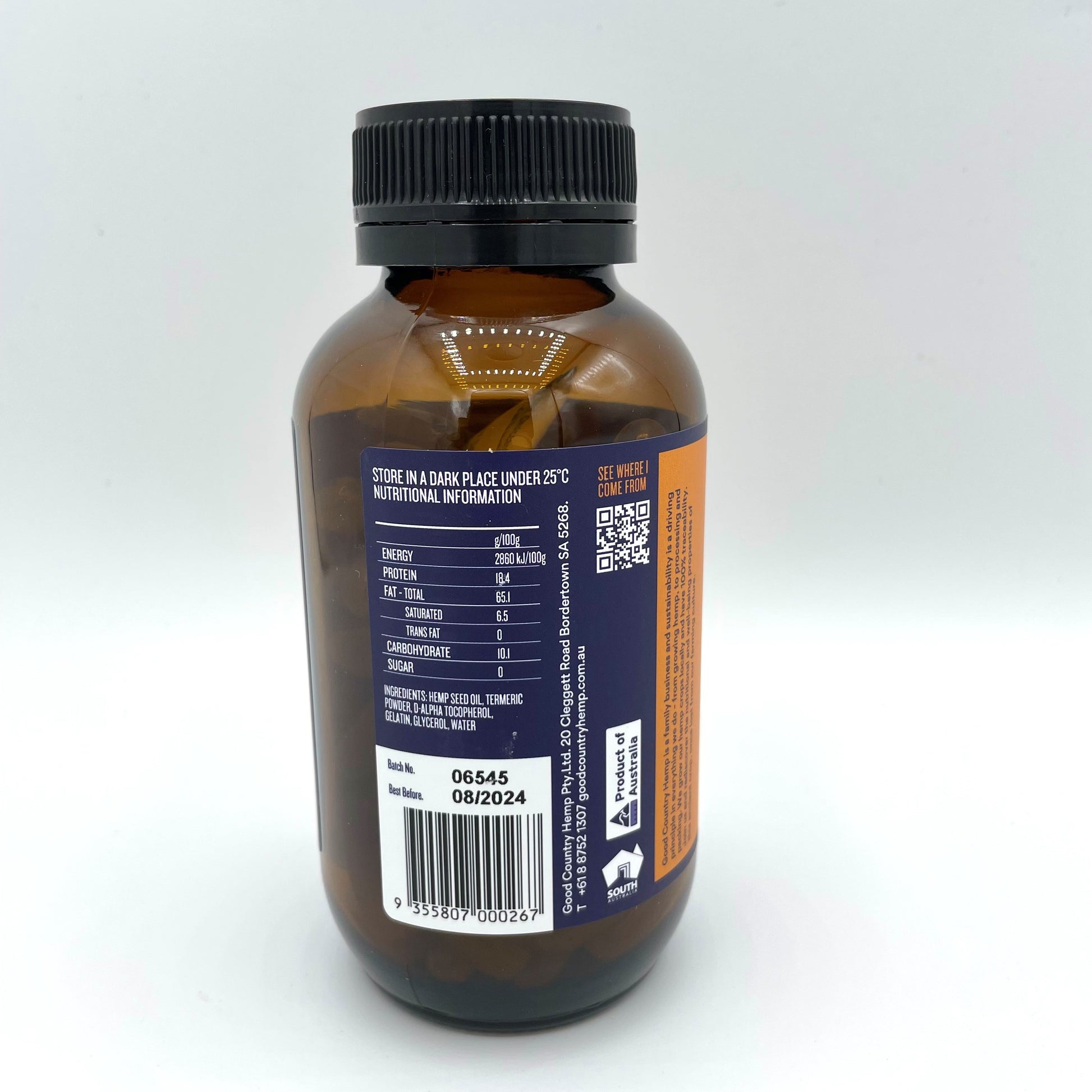 Hemp oil capsules are a great way to get your daily dose of Omegas 3, 6 and 9, plus all the other good nutrients that only hemp knows how to give. Containing 100% pure South Australian grown hemp seed oil and added turmeric. Both hemp and turmeric are know for natural anti-inflammatory properties to help relieve joint pains and arthritis. Turmeric is known as an antioxidant, for its potential to improve overall health.